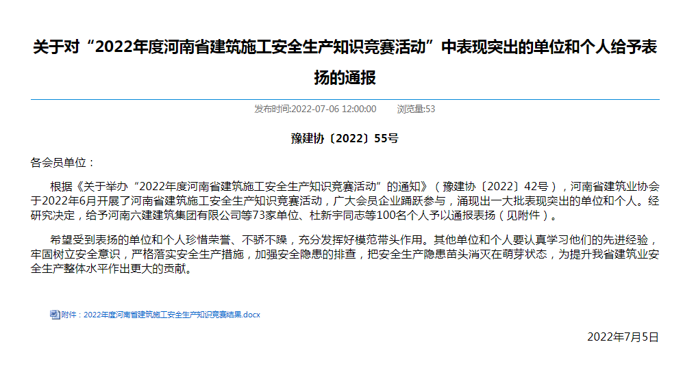 【查看詳情】安全生產是一個企業的生命線,也是一個永恒的話題。多年來,河南五建第二建筑安裝有限公司始終堅持安全第一、預防為主、綜合治理的安全方